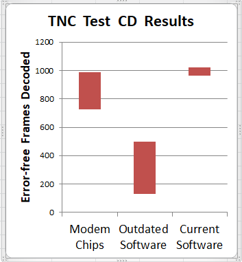 Why waste $200 and settle for mediocre receive performance from a 1980's technology TNC using an old modem chip? Dire Wolf decodes over 1000 error-free frames from Track 2 of the WA8LMF TNC Test CD, leaving all the hardware TNCs, and first generation "soundcard" modems, behind in the dust.